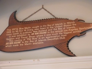 Once settled in we drive into Russell and immediately fall in love with the place. We come across the oldest garage in use in New Zealand before taking a drink at the Bay of Islands Swordfish Club where there are amazing castings of ‘trophy’ fish which have been caught over the years; namely a Broadbill @ 700lbs and a 1017lbs Blue Marlin. Newspaper clippings and trophies adorn the walls for huge records achieved when fishing in the area.