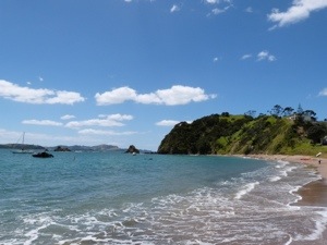 Today, Russell is renowned as a base for big game fishing excursions and cruises around the Bay of Islands. Behind the town, we visit Flagstaff (Maiki) Hill which offers stunning views of the area. We then make a stop at nearby Long Beach which caters for those seeking sand and surf. It is here that we fall madly in love with the Bay of Islands … it is ‘that place’ … and we spend a lovely couple of hours here totally engaged in our surroundings.
