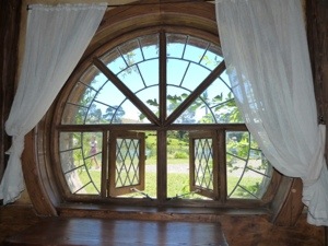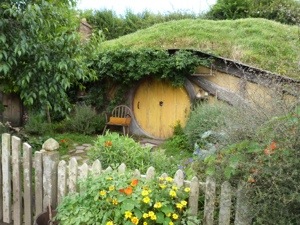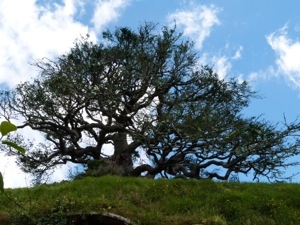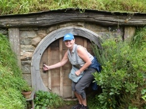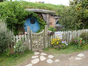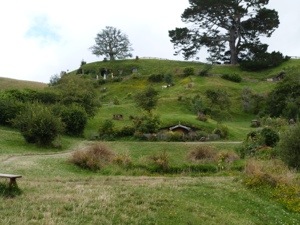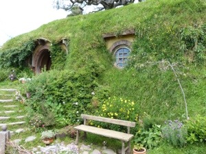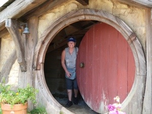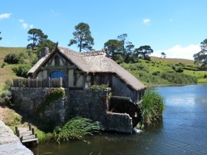 The set has now been completely rebuilt and can be seen as it appeared in the films and it is soooo cute. We learn the tricks of the trade in setting up this filmset of 37 hobbit holes – including the cutting down of the Oak Tree overlooking Bag End which was cut down and brought in from near Matamata. Each branch was numbered and chopped, then transported and bolted together on top of Bag End – all 26 tonne of it. I, for one, am quite excited as we venture around The Shire and see the lane where Gandalf arrives, Bag End, Sam’s house, the Party Tree and Field, the Mill and Arch Bridge.