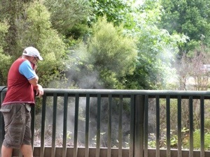 Initially ‘filling in time’ til the 1.00pm tour, we went for a walk around the local Kuirau Park at the northern end of Rotorua; a public park that is definitely alive!!!!!! with walking tracks which lead to numerous areas of vigorous geothermal activity.