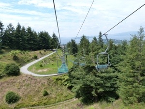 On returning to the town and learning that the 1.00pm Duck Tour was cancelled, we took ourselves off for some fun at the Skyline Luge and what fun we had, lol. Found in the heart of New Zealand’s scenic volcanic wonderland just minutes from Rotorua’s City centre, this is where the Luging adventure all began in 1985. Conveniently located high on the side of Mount Ngongotaha, is Skyline Rotorua. A Gondola carries you to 487 metres above sea level to a stunning environment providing panoramic views of Rotorua City, Lake Rotorua and the surrounding area. A 900 metre long Doppelmayr cableway system with a vertical rise of 178.5 metres, carries us to the Skyline Rotorua complex.
