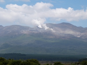 Stocking up with groceries for the next few days (including our ‘picnic’ for the great walk tomorrow!) at Turangi, we make good progress towards Whakapapa Holiday Park, where we will base ourselves for the next two days. Our journey into this volcanic area is truly spectacular and the sights are breathtaking. We see the volcanoes we will be exploring all the way into Whakapapa getting larger and larger. Mt Nguaruhoe (Mt Doom in the Lord of the Rings Trilogy) appears and it is so prominent and dominant in the skyline.