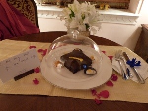What an hilarious evening we have 😀 Firstly, we join the gang for a surprise dinner together for Kelly and Jay as they got engaged last night!!!!!! Afra does himself proud and decorates the table beautifully. Kelly and Jay are surprised by the gesture and we think they are pleased to have somebody to celebrate with until they get home 😀
