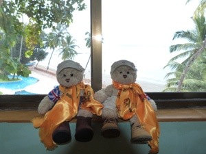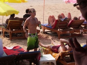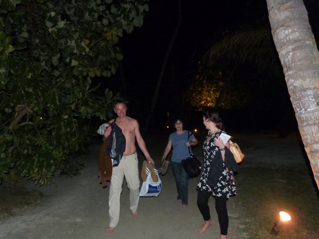 As dusk falls we decide that its time they should get to their rooms … but we stop again at the beach bar on the way, ‘cos we can’ !!!! They finally make it to their rooms at 6.30pm, lol, and are well impressed – we are all on the same stretch of beach which is great and meet up for dinner and a very entertaining evening is had. The Wildes seem to have brought a bunch of nutters with them, pmsl, and it turns out to be our latest and best evening yet as we ‘people watch’ the floor show that unfolds before us – ssssooooooo funnnnnyyyyyyy!