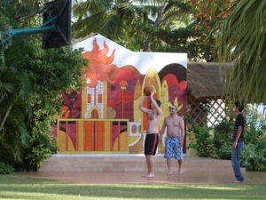 Our room is not ready until 1.00pm and, after completing the necessary paperwork, we start to have a look around. It is whilst doing this that we notice a promotion for an upgrade to the Ocean Villas for a limited time only. We take a buggy ride out to the Ocean Villas to have a look around and it’s a ‘done deal’ – we sign on the dotted line straight away. They are awesome and something we have not experienced before and we grin from ear to ear as we retrieve our ‘all inclusive’ bands and proceed to lunch whilst our room is cleaned 🙂