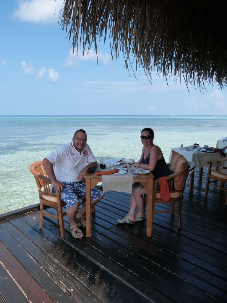 We had a great time up in the Ocean Villa (and of course the exclusivity it offered lol) and the 18th saw our move to the Beach Villa. Again, this was great in itself but we now have to pay for our wifi and ‘slum’ it with the majority of the island’s guests in the main restaurant, pmsl!!!!!!! On the plus side, as the name suggests, it’s right on the beach … we just step out our front door and the beach and sea are our front yard … it’s blissful and I, personally, love it.