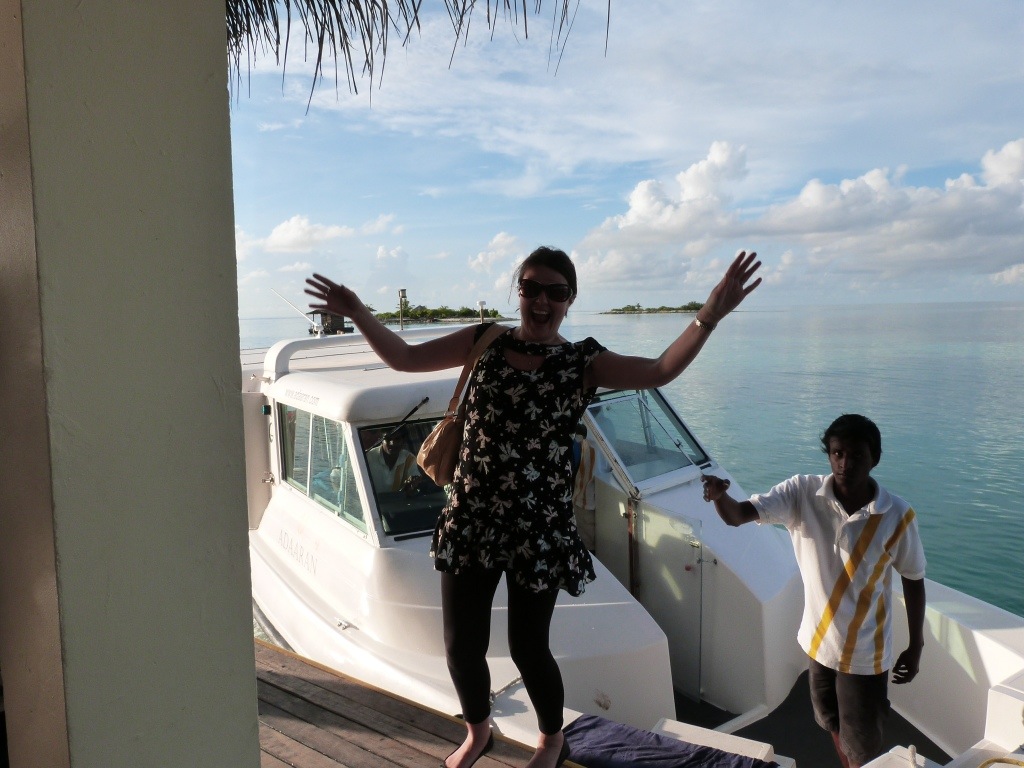 Our remaining friends on the island, old and new, sit with us whilst we await our departure 😦 and it’s an emotional one – I, for one, will never get used to them!!!!! However, we are soon on the speedboat (in the rain – we seem to have left the island at exactly the right time, lol) making our way back to Male.
