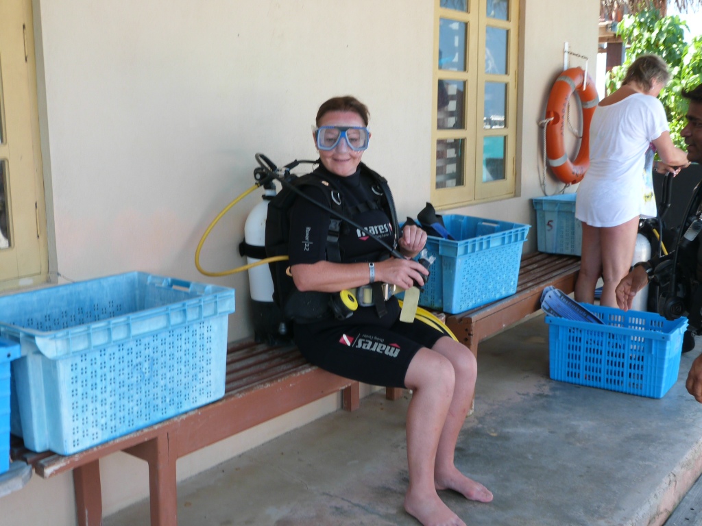 Before we leave the Dive Point, I complete the paperwork necessary to start my course tomorrow and, inwardly excited but outwardly nervous, I arrange to meet the instructor at 9.00am armed with water and a towel!
